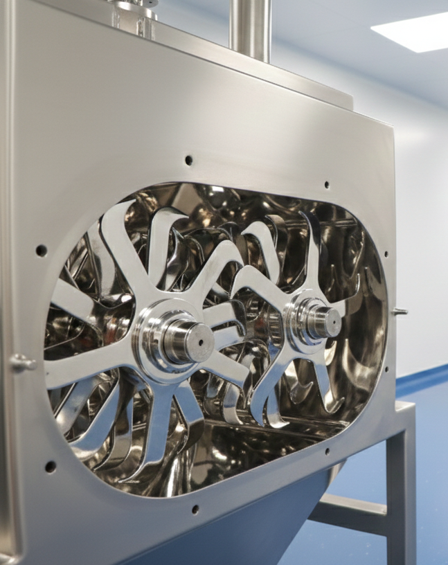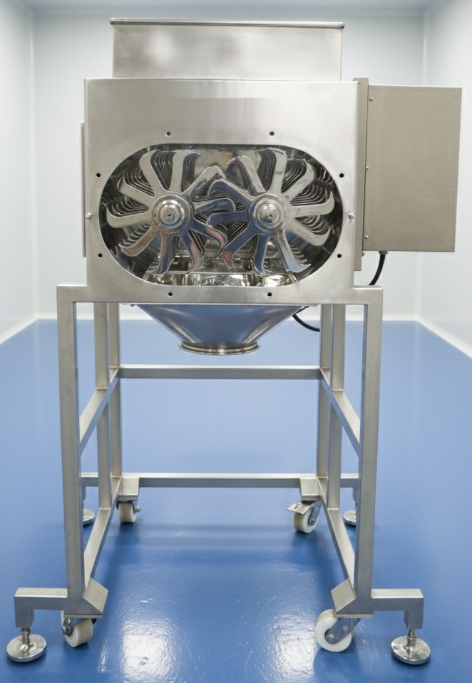 cGMP requirements, it features rotating blades or teeth along with