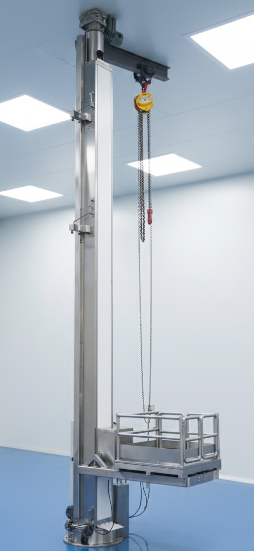The Skyline cGMP IPC Lifting and Positioning Device is engineered to comply with Good Manufacturing Practice (cGMP) standards, ensuring safe, hygienic, and efficient material handling within pharmaceutical production environments. Built with robust construction and integrated with essential safety mechanisms, this equipment enables reliable lifting, transferring, and positioning of Intermediate Bulk Containers (IBCs/IPCs) with ease and precision.